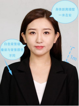 3、露出耳朵和额头,头部正视镜头,保持肩膀齐平,表情自然,嘴唇自然闭合。