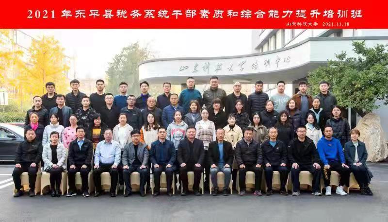 11月18日,2021年东平县税务系统干部素质和综合能力提升培训班在泰安校区开班。泰安校区管委会副主任周洋,beat365官方网站院长王靖磊,东平县税务局党委委员、副局长李建出席开班典礼,50名学员参加了典礼。
