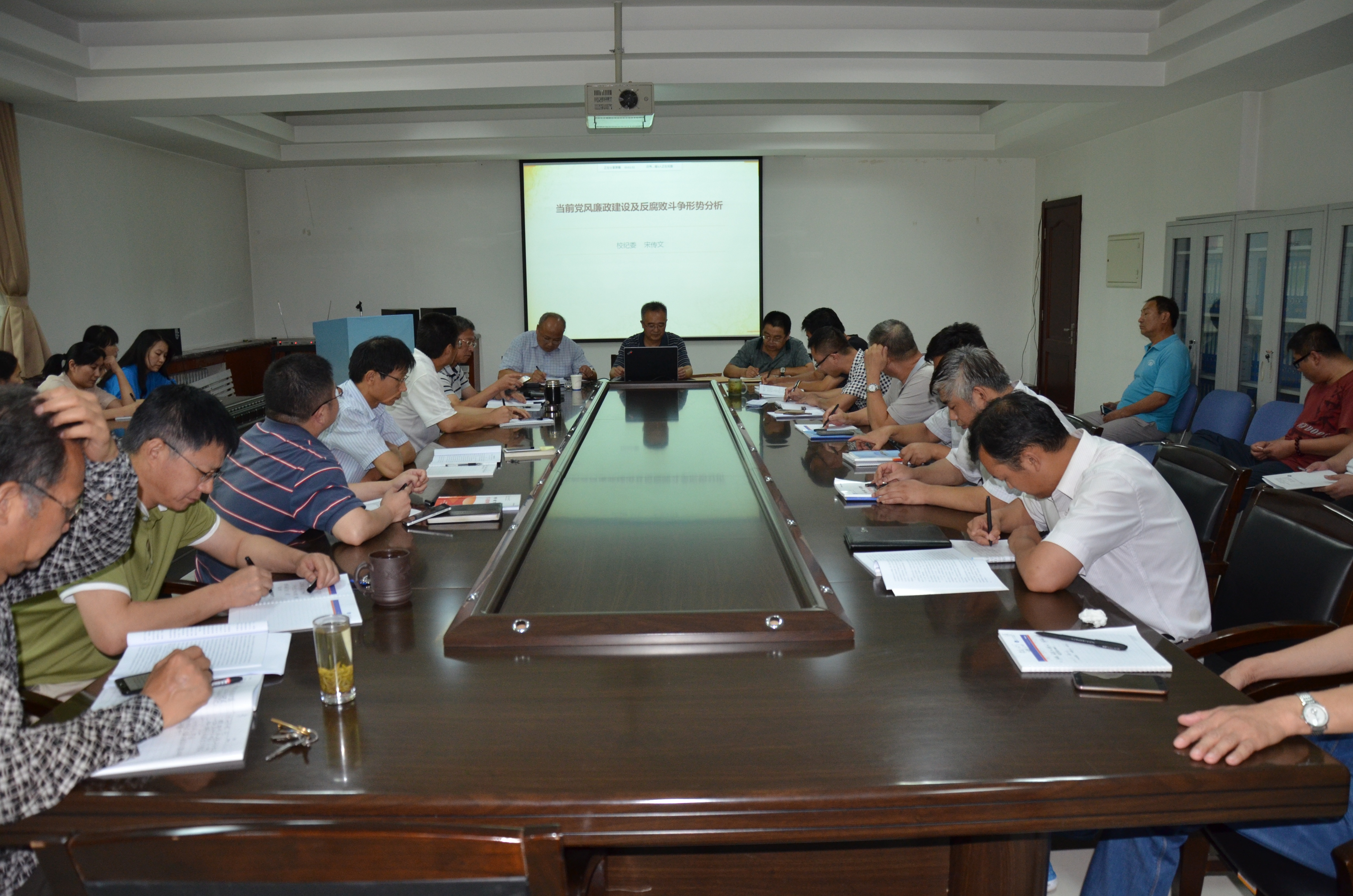 7月5日下午,校纪委副书记宋传文为beat365官方网站全体职工作了题为“当前党风廉政建设及反腐败斗争形势分析”的专题报告,学院直属党支部书记耿献文主持了报告会。