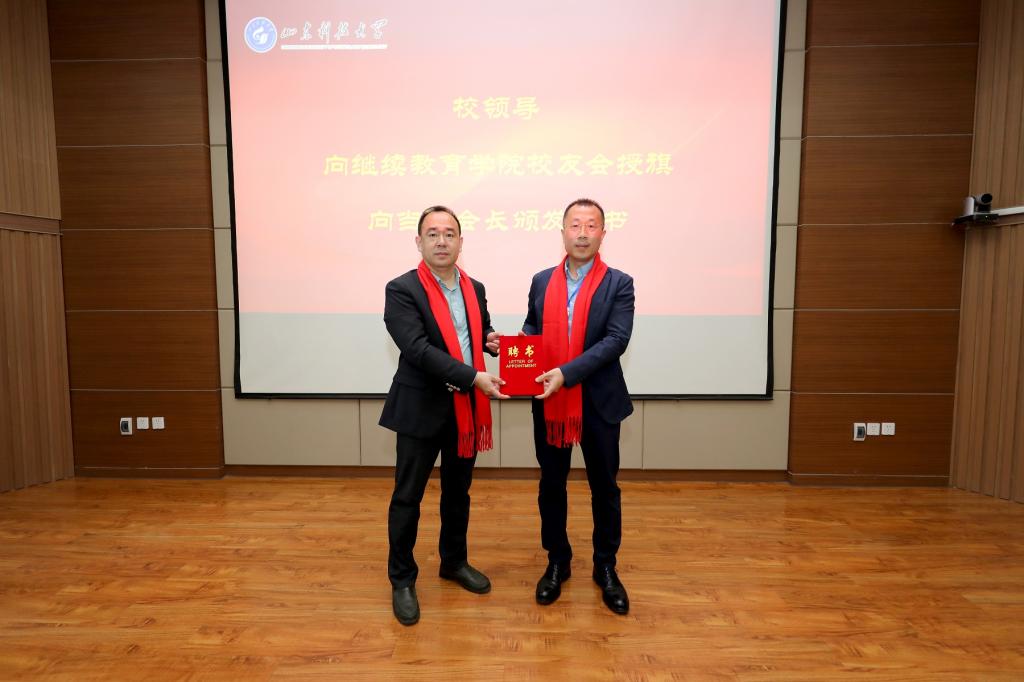 为当选会长王靖磊颁发聘书