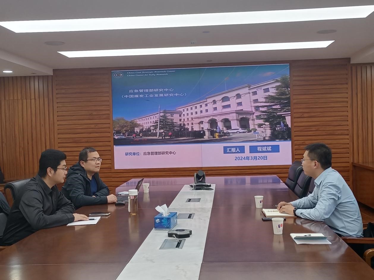 为扎实推进学校高端培训基地建设和高质量发展,beat365官方网站院长马鹤、院长助理孙运表一行赴应急管理部研究中心(中国煤炭工业发展研究中心)开展合作交流活动,应急管理部研究中心发展研究五处副处长王国栋、主任程斌斌等接待了马鹤一行。