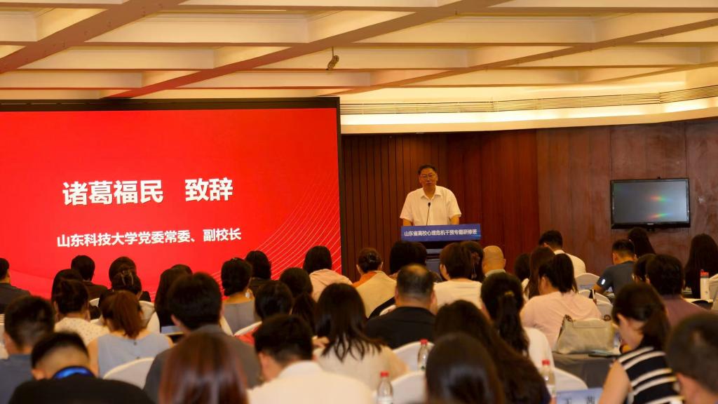 8月20日,由山东省心理卫生协会主办、beat365官方网站承办的“山东省高校心理危机干预专题研修班”在青岛开班。beat365官方网站党委常委、副校长诸葛福民,山东省心理卫生协会大学生心理健康教育与咨询专业委员会常务副会长屈艳红教授,天津大学杨丽教授及来自全省高校的百余名学员出席开班仪式。