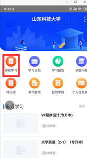 (3)点击“课程学习”,选择需要参加线上考试的课程,点击“在线作业”——“开始做题”
